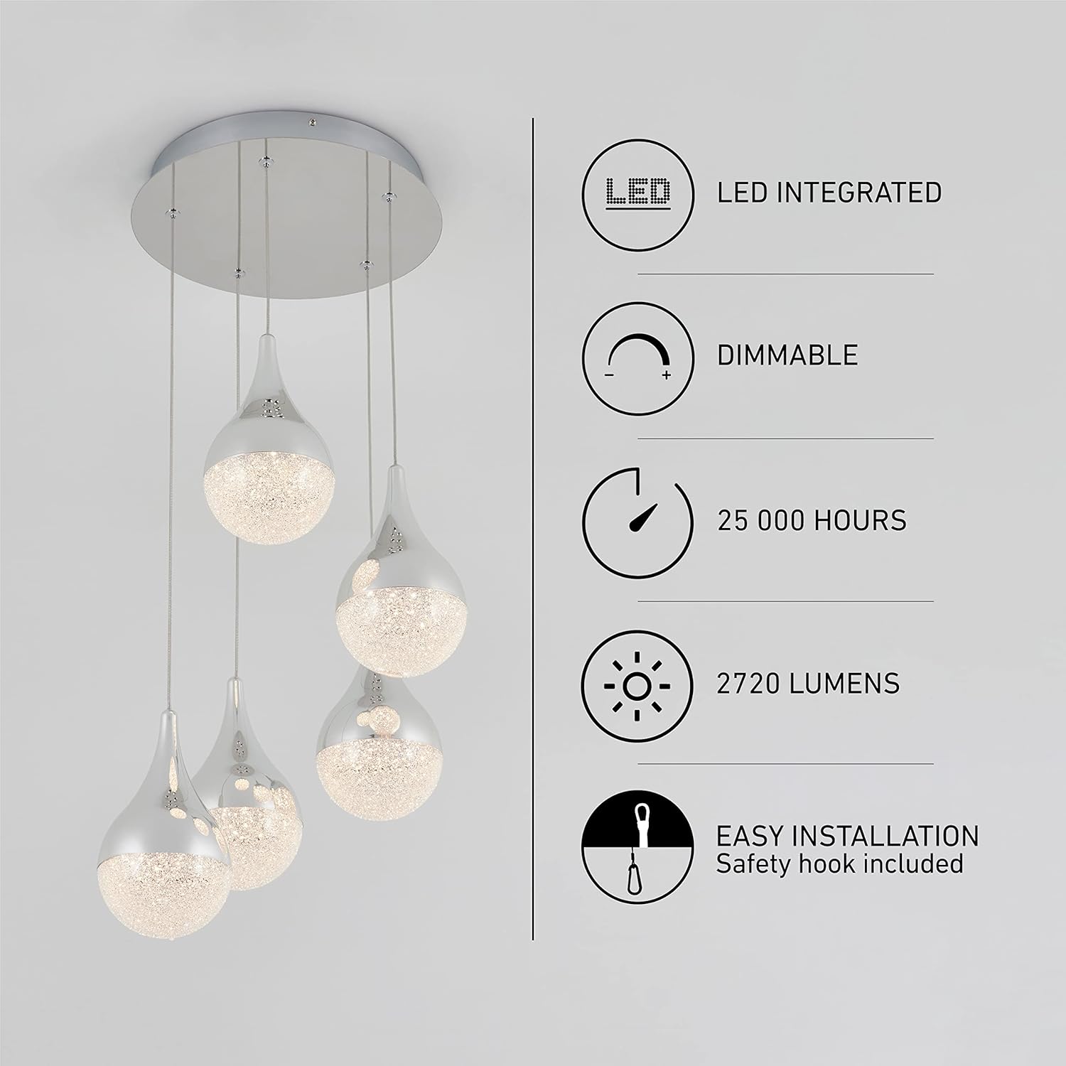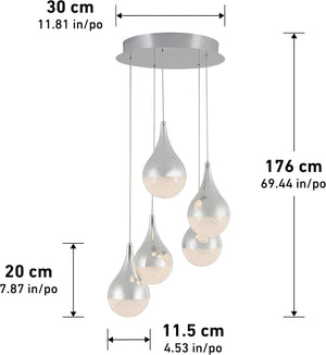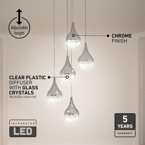 Artika PDT-5GL-RN Glitzer 5-LED Integrated Pendant Light Spiral, Silver, 5-Lights