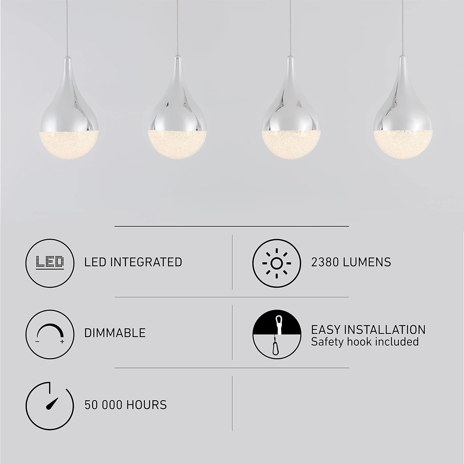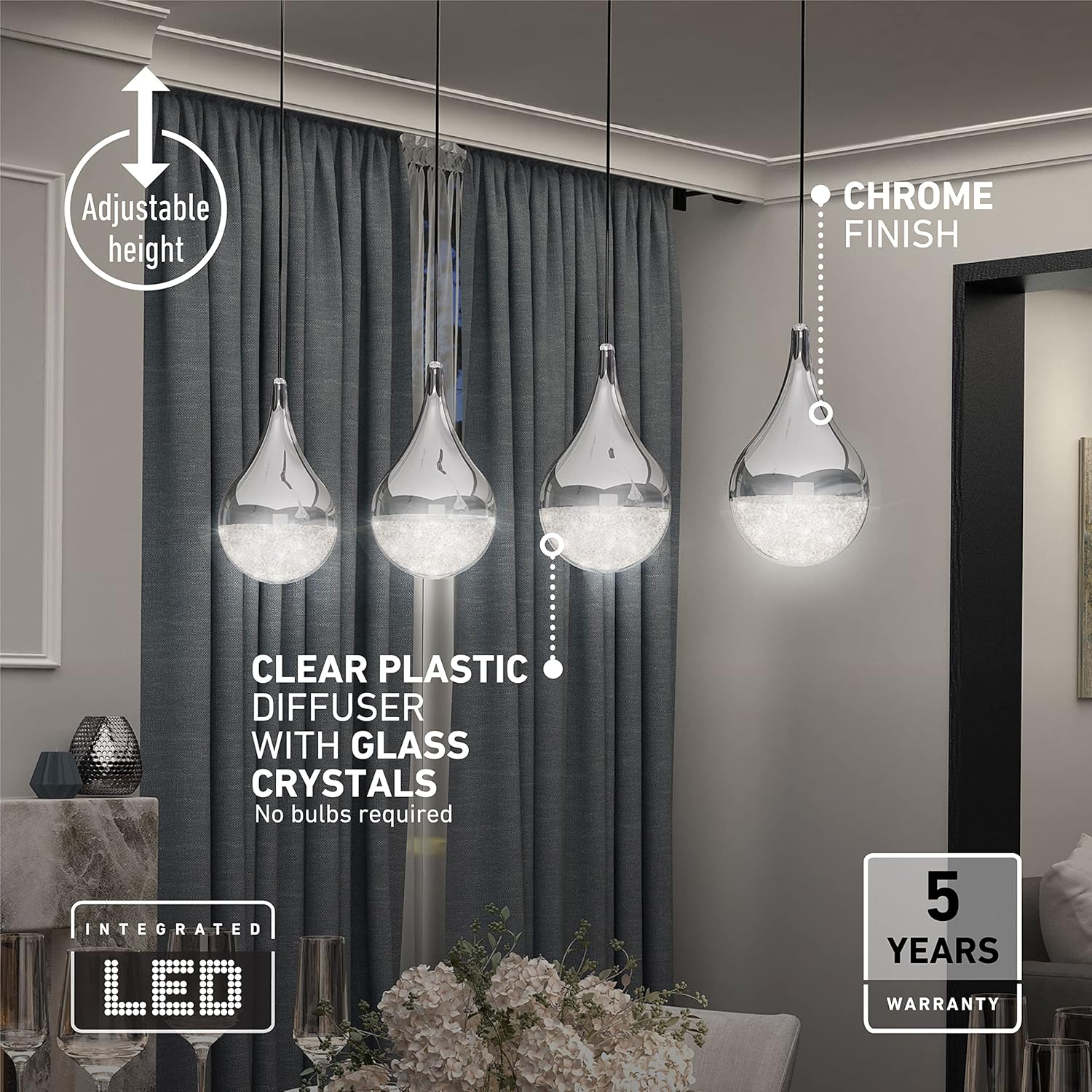 Add a touch of modern chic to your kitchen with this sparkling crystal fixture. The integrated LED lighting of the Glitzer 5-Light pendant will provide the perfect ambiance for your most memorable moments. Create the perfect mood and install it over your kitchen island to complete your decor and enjoy the unique radiance. This glittering fixture also stands out for its exceptional lifetime thanks to its LED technology. In addition, it is compatible with most dimmers, allowing it to be adjusted to your needs. Easy and fast installation.